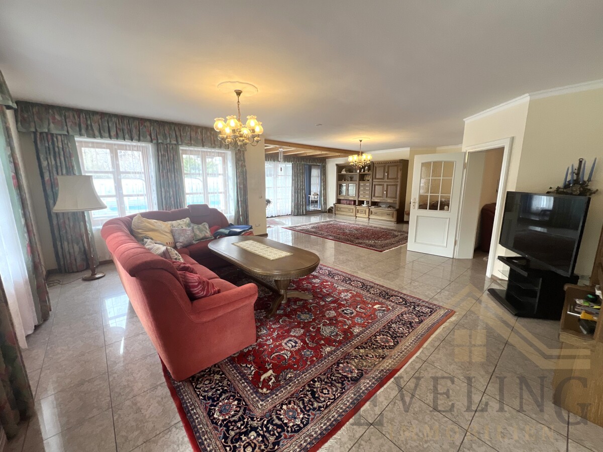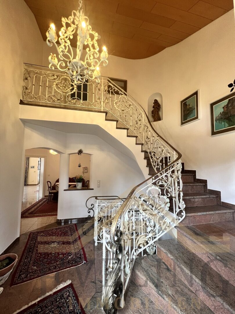 Mit einer Wohnfläche von insgesamt ca. 368 m² – davon ca. 243 m² im Erdgeschoss und ca. 125 m² in der Dachgeschoss-Einliegerwohnung – sowie rund 250 m² Nutzfläche im Untergeschoss, bietet die Immobilie außergewöhnlich viel Raum für Familie, Mehrgenerationenwohnen oder Wohnen und Arbeiten unter einem Dach.
