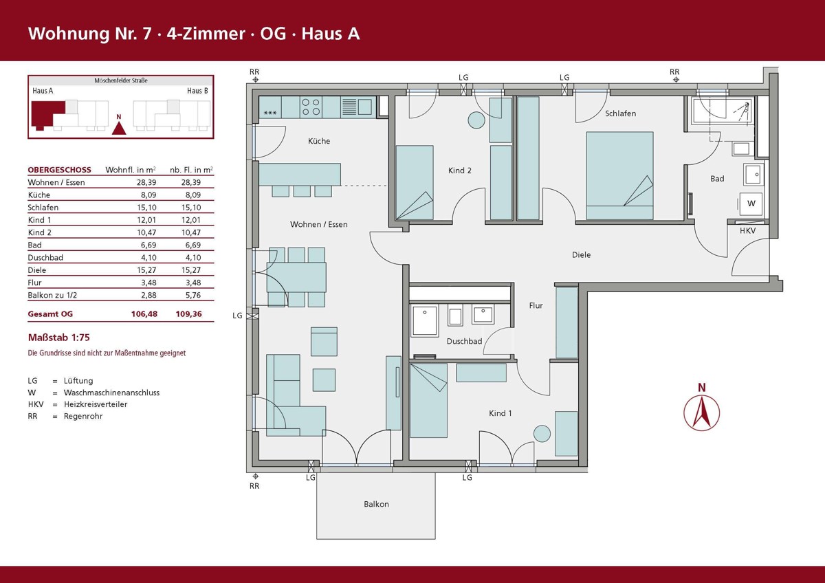 Die Wohnung verfügt über eine Fußbodenheizung und die dezentrale Wohnraumbelüftung sorgt zugleich für ein angenehmes Raumklima.