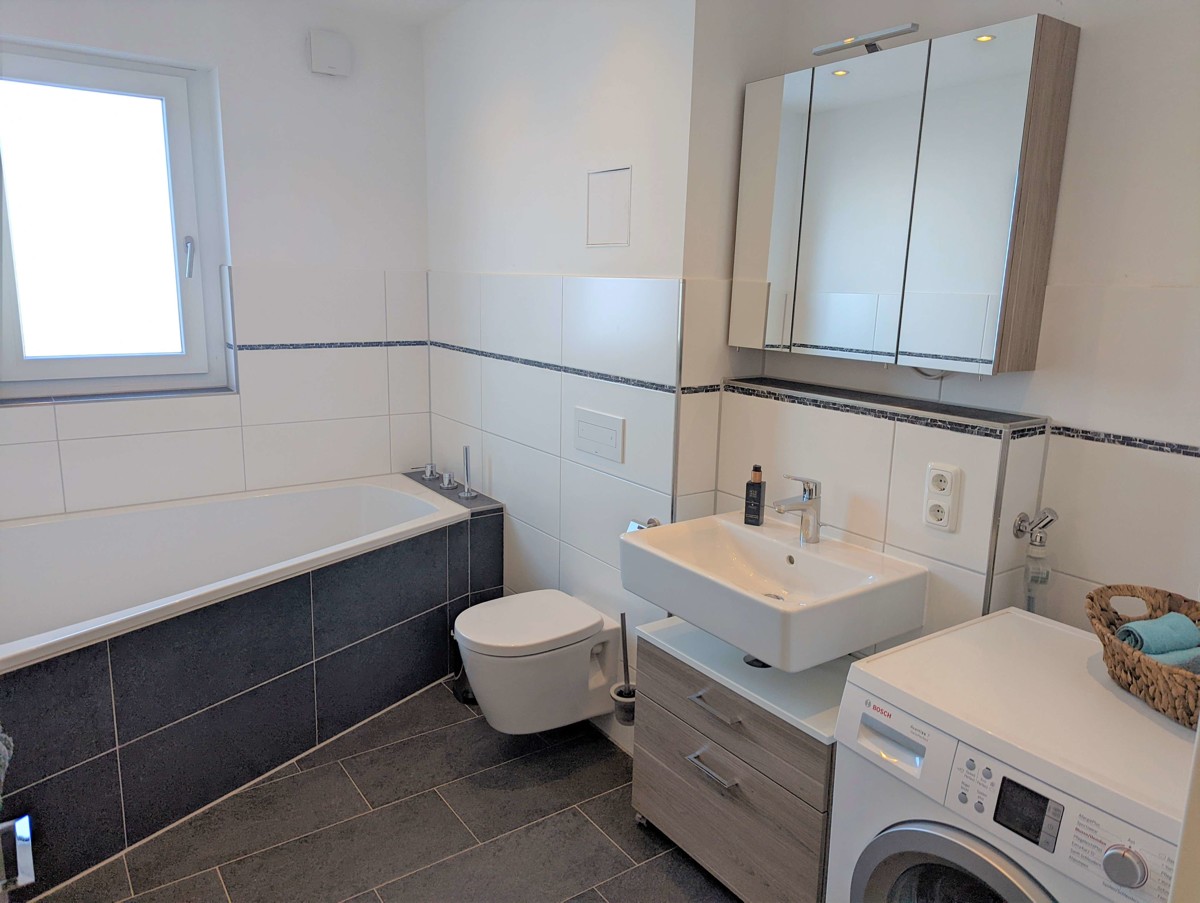 - 2 Bäder mit Badewanne und Fenster, Handtuchheizkörper und Dusche
