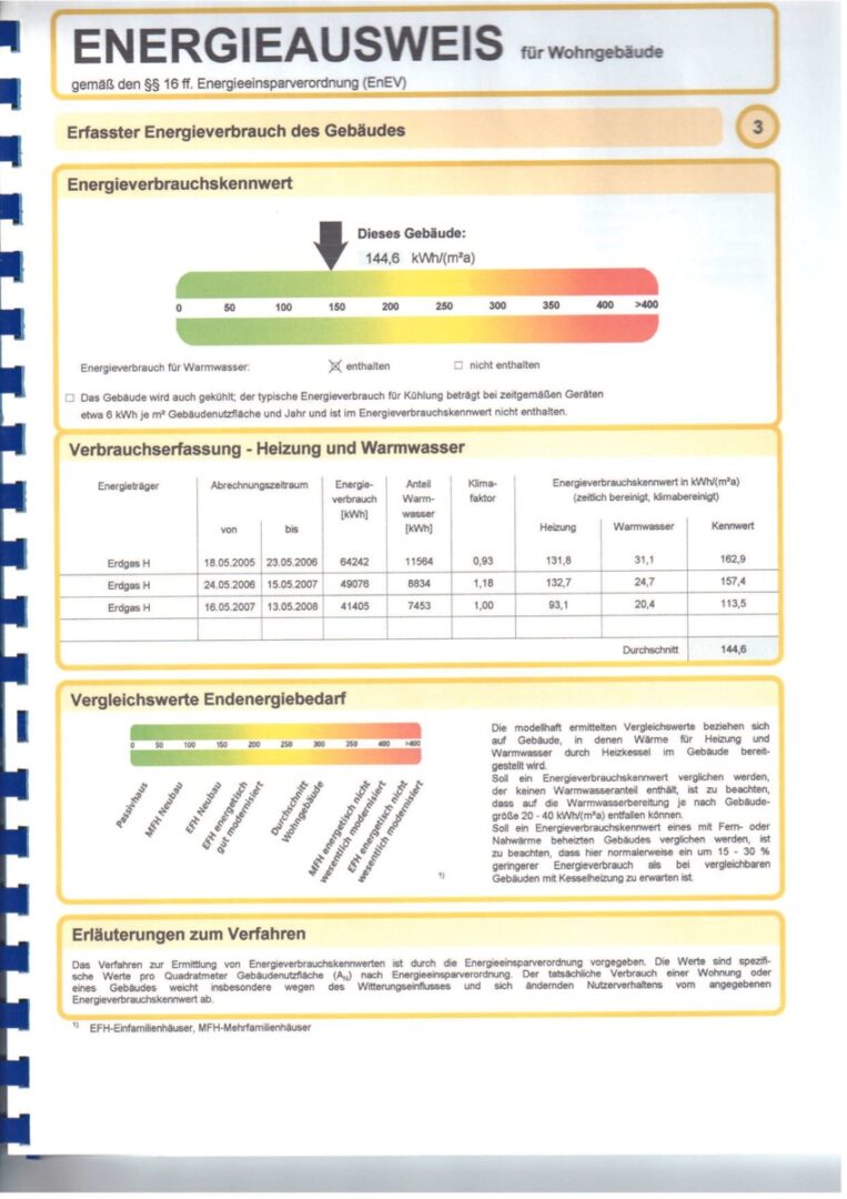 Das Mehrfamilienhaus verfügt über eine Gastherme bzw. Heizöfen in den Wohnungen für Heizung und Wasser.